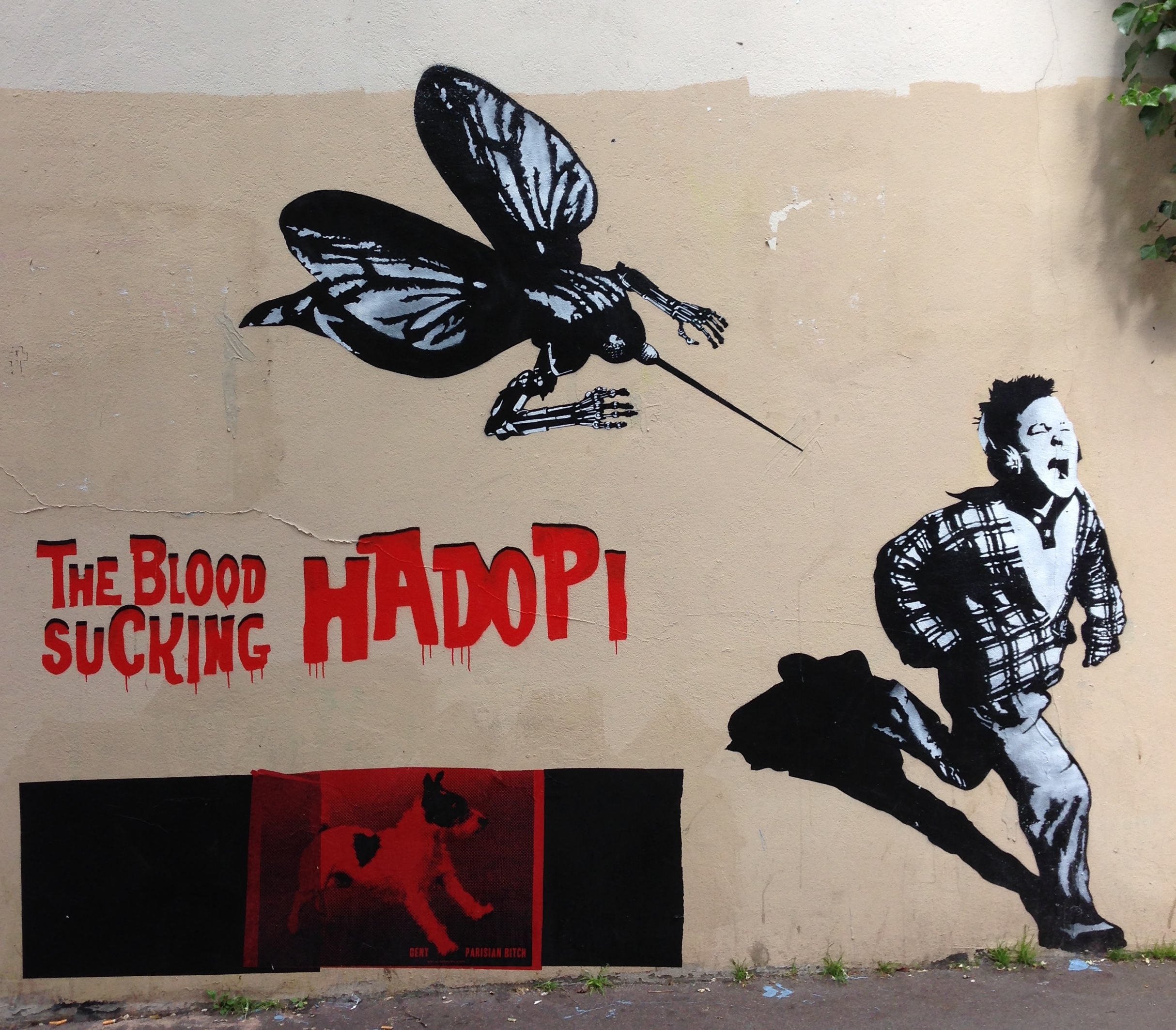 The mosquito art was censored for a while – removing the "Blood sucking HADOPI" line. But apparently it has been recently restored.